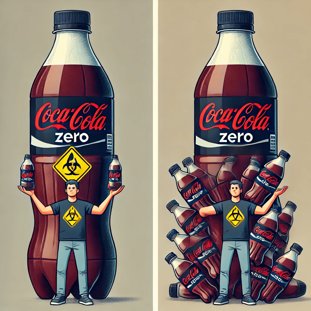 Coke Zero enthält keine Kalorien, aber künstliche Süßstoffe wie Aspartam und Acesulfam-K. Beide wurden auf ihre Sicherheit hin untersucht und gelten in üblichen Mengen als unbedenklich. Dennoch haben sie eine empfohlene Höchstmenge, die sogenannte „ADI“ (Acceptable Daily Intake), die nicht überschritten werden sollte. Um den ADI von Aspartam zu erreichen, müsste ein Erwachsener (70 kg) über 14 Liter Coke Zero am Tag trinken – eine Menge, die im Alltag kaum zu schaffen ist. Bei 14 Litern ist man erst am Grenzwert. Tatsächlich tödlich sind wohl erst viel größere Mengen.